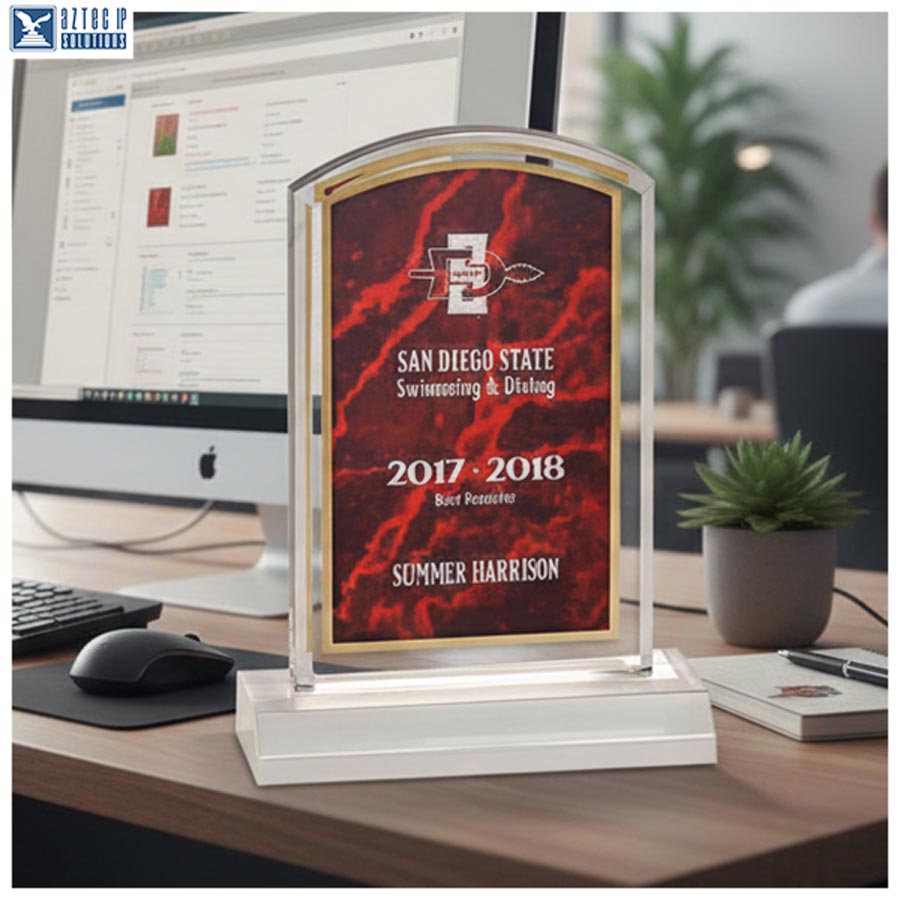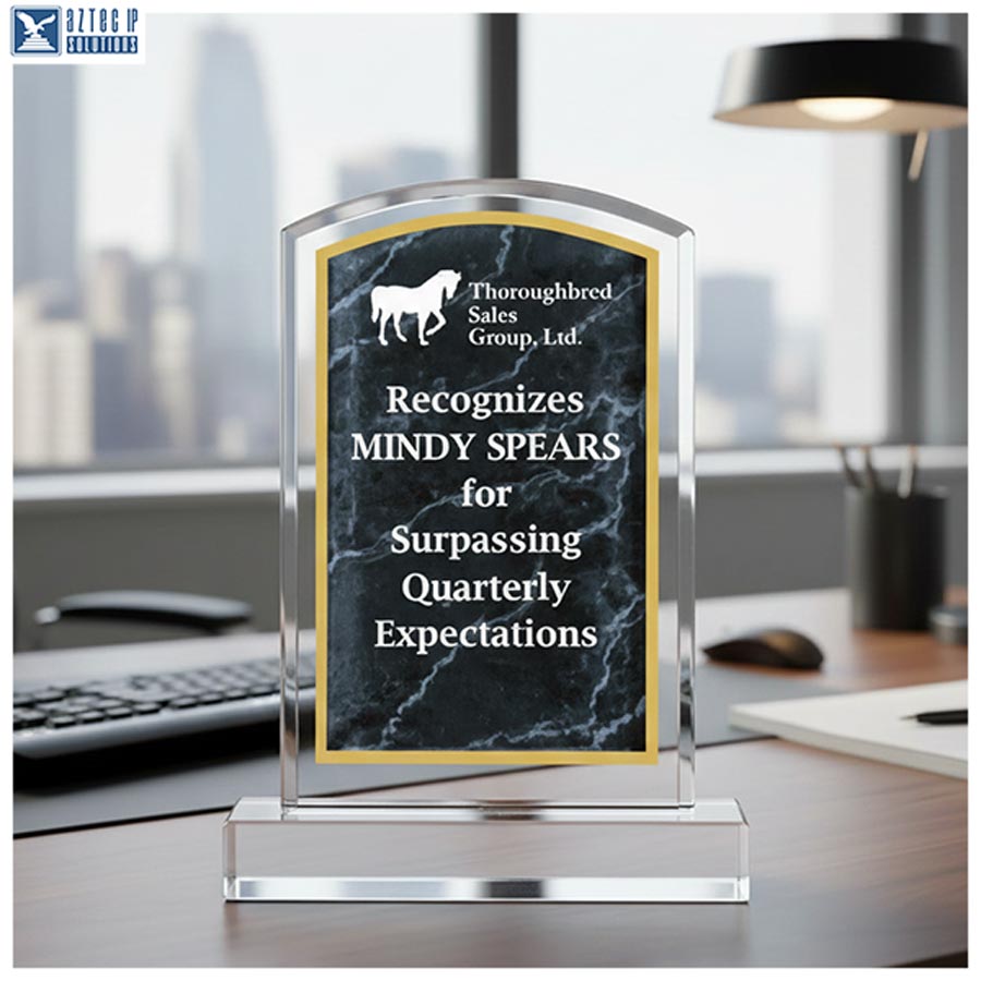 Celebrate achievements with timeless elegance using the Prestige Arch Acrylic Recognition Award. Crafted from ¾-inch thick marbleized acrylic, this award features a graceful arch top design mounted on a clear base for stability and sophistication. The reverse-engraved message creates a striking “look-through effect,” ensuring your recognition stands out beautifully from every angle.