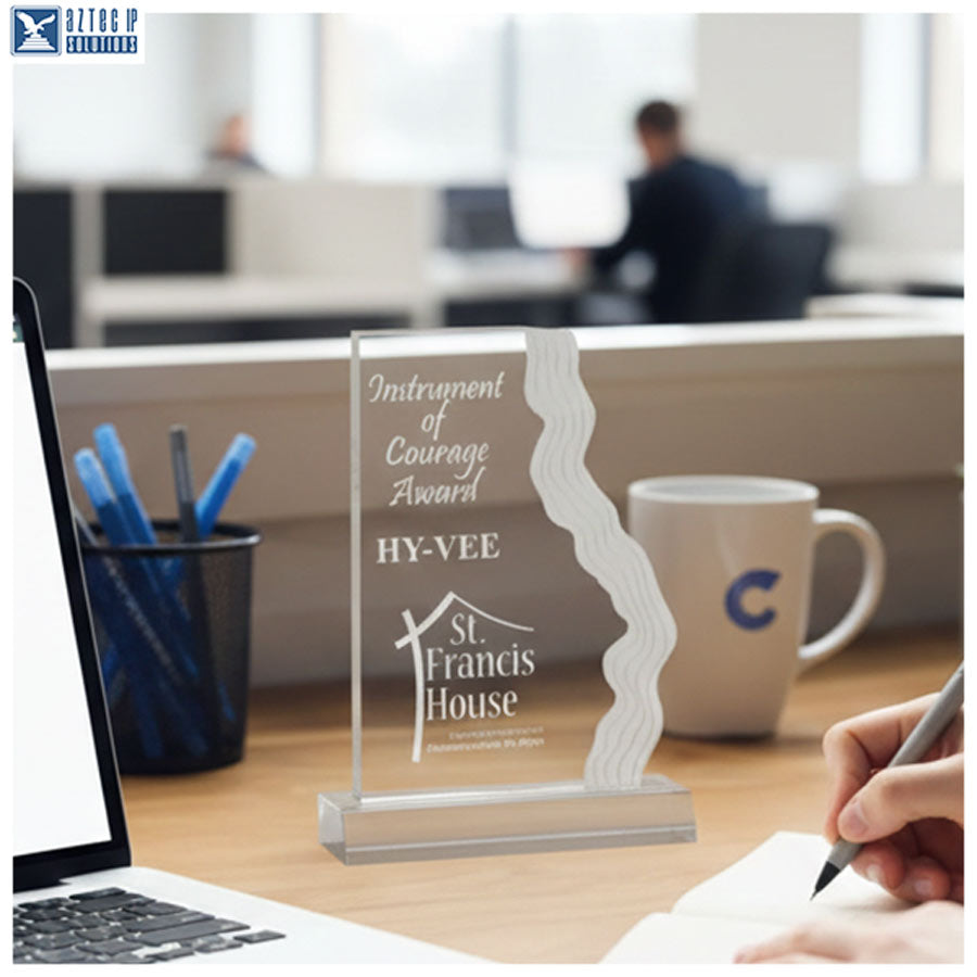 Celebrate achievement with the Cascade Frost Acrylic Recognition Award, a stunning piece designed to honor excellence in style. Featuring a waterfall-inspired frosted edge, this award combines modern elegance with timeless craftsmanship.