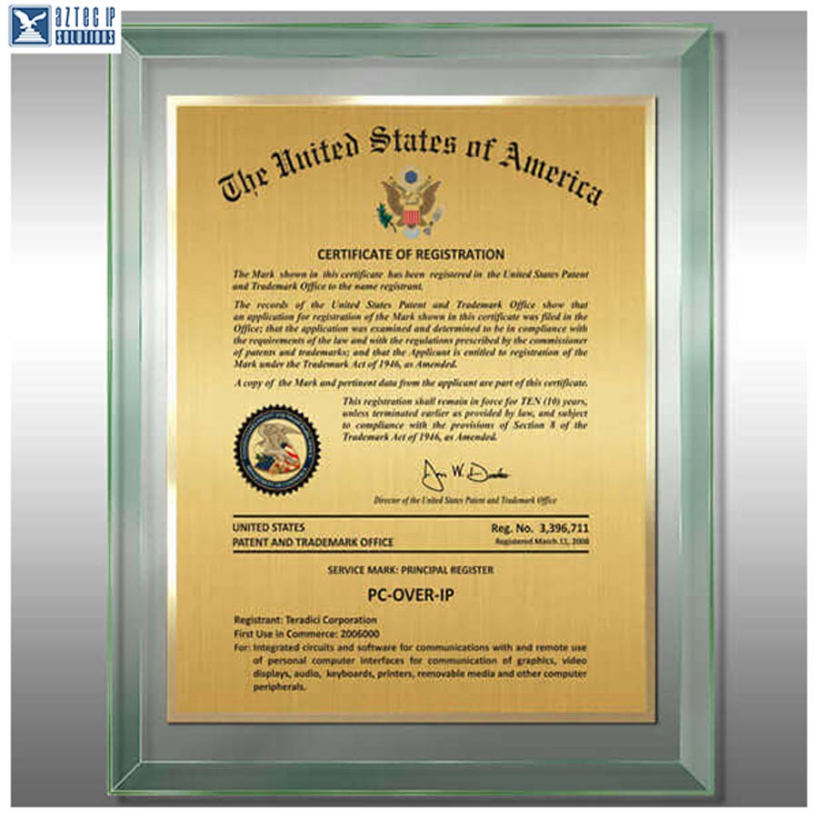 These Bevel Jade Plaques are an elegant way to display your registered trademarks. They are preferred over traditional wood plaques by many of our customers who look for a more contemporary way to showcase their trademarks.
