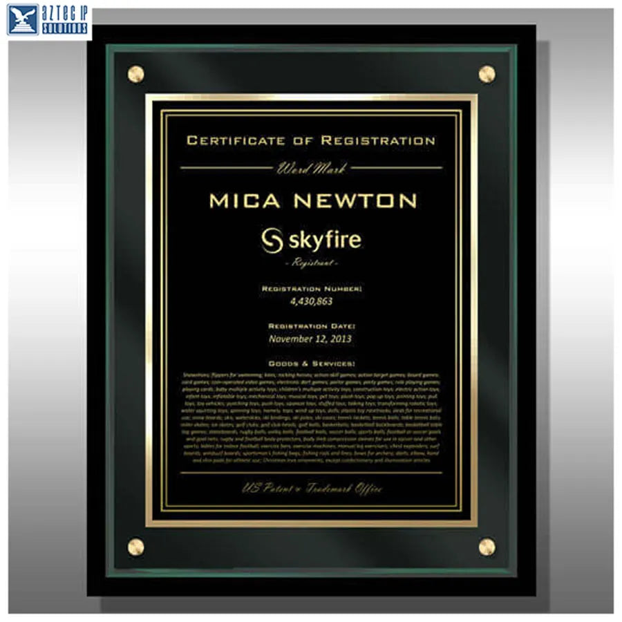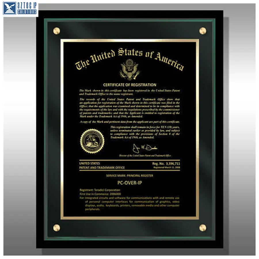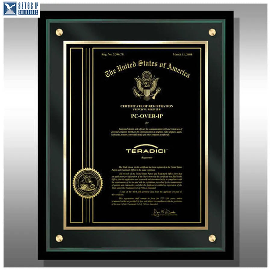 These trademark wall displays can be installed individually or together to showcase your corporate trademark portfolios.