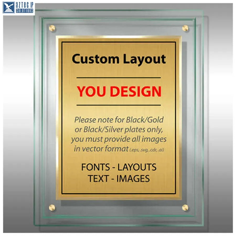 Text/Images are digitally imprinted on a Silver HD or Gold HD Plate and is suspended between two Lucite ® rectangles creating an elegant look.